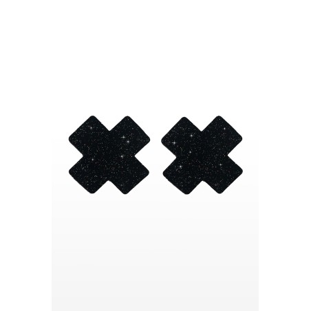 2 cache-tétons adhésifs en forme de X noir, marque Taboom.