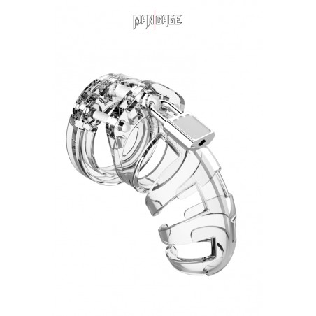 La marque ManCage, spécialiste des cages de chasteté masculine, présente son modèle ManCage n°02, une cage de chasteté transparente, haute qualité, de 9 cm de long, avec un design ajouré qui garde la verge bien visible.