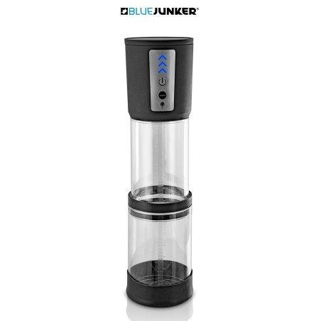 Ce développeur de pénis de la marque Blue Junker est composé d'une pompe automatique rechargeable (à l'aide d'un câble USB fourni) qui permet d'accéder simplement à 3 niveaux de pression en appuyant sur un des boutons de son panneau de contrôle.