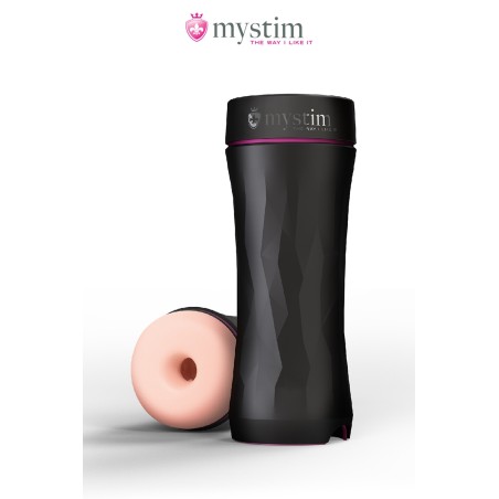 Le masturbateur masculin OPUS E - version Donut - de Mystim est une combinaison sophistiquée et jouissive d'un masturbateur avec un orifice en forme de Donut et d'un sextoy à électro-stimulation.