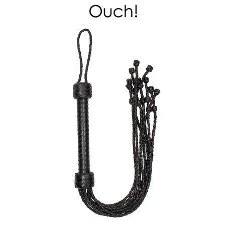 Fouet court en cuir noir tressé avec 9 lanières à double tressage pour procurer des sensations ultimes, par Ouch!
