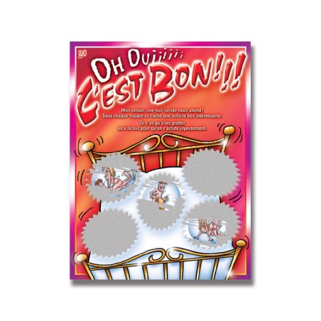 "Mon amour, une nuit torride nous attend! Sous chaque espace se cache une activité très intéressante. Tu n'as qu'à les gratter une à la fois pour qu'on s'éclate joyeusement." Un message limpide pour votre moitié ! Il ne lui reste plus qu'à gratter et vous: vous préparer à assurer au lit!