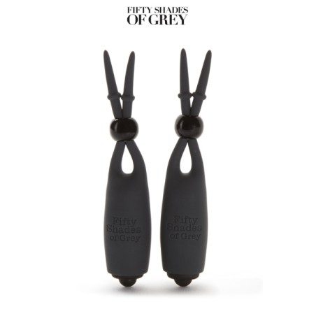 Envoyez de douces sensations sur vos tétons avec les pinces à seins vibrantes, en silicone, collection Week-end, par Fifty Shades of Grey.